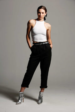 These pants are a masterclass in versatility. Crafted from a breezy linen-rayon blend, they're the wardrobe chameleon you never knew you needed. Want to shake things up? Cuff the legs and tie them at the waist for a playful twist. Feeling more laid-back? Let them flow freely, or add your own belt for a personalized touch. The non-stretch fabric creates a perfectly structured silhouette that holds its shape while you're living your best life. Whether you're brunching with friends or conquering your to-do list, these Paper & Peg pants adapt to your mood faster than you can say "outfit change." The natural fiber blend keeps you cool and collected, while the contemporary design proves that comfort and style are definitely not mutually exclusive.